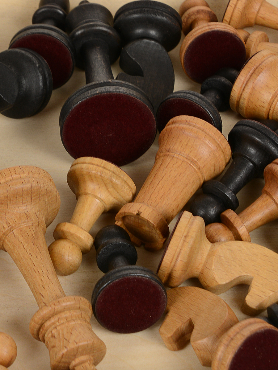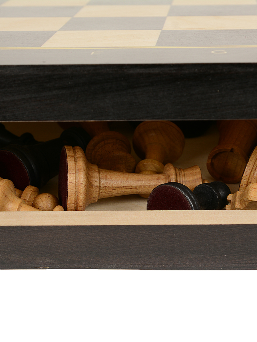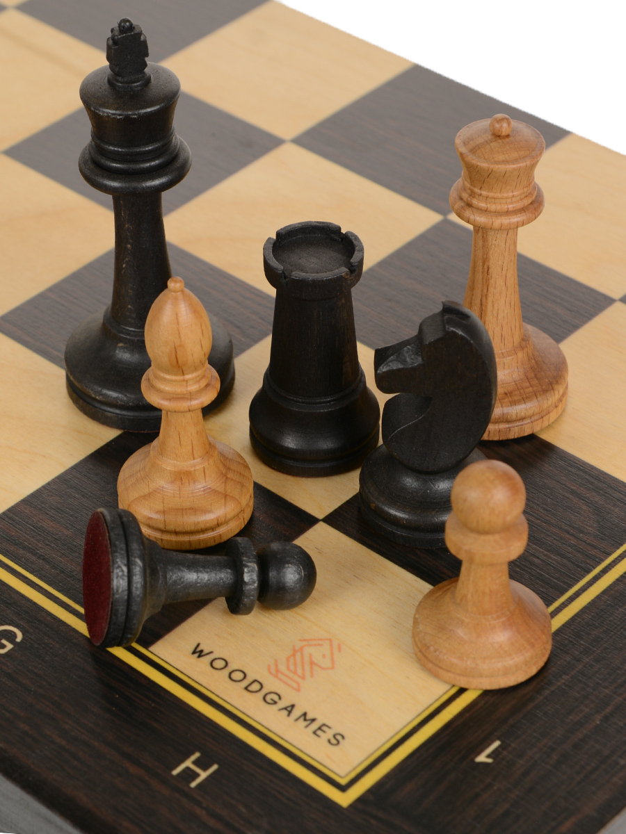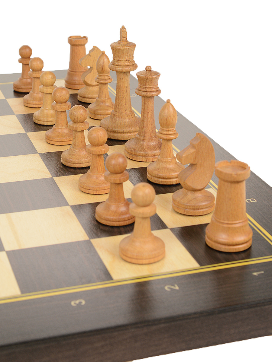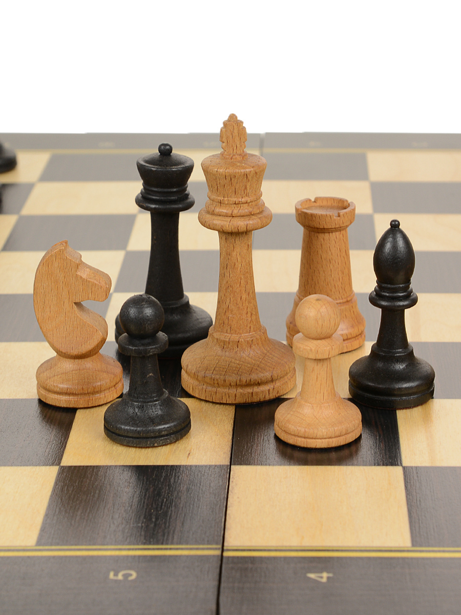 Деревянные шахматы Модерн с фигурами без утяжеления для домашнего использования, школьных заниятий и обучения. Удобно хранить на книжной полке. Шахматные фигуры изготовлены из массива бука. Размер шахматной доски 50 х 50см. Размер клетки 50мм. Высота короля 105 мм, основание 45 мм. Высота пешки 52 мм, основание 30 мм