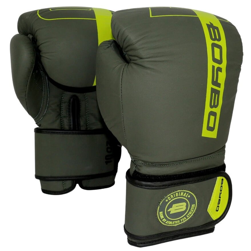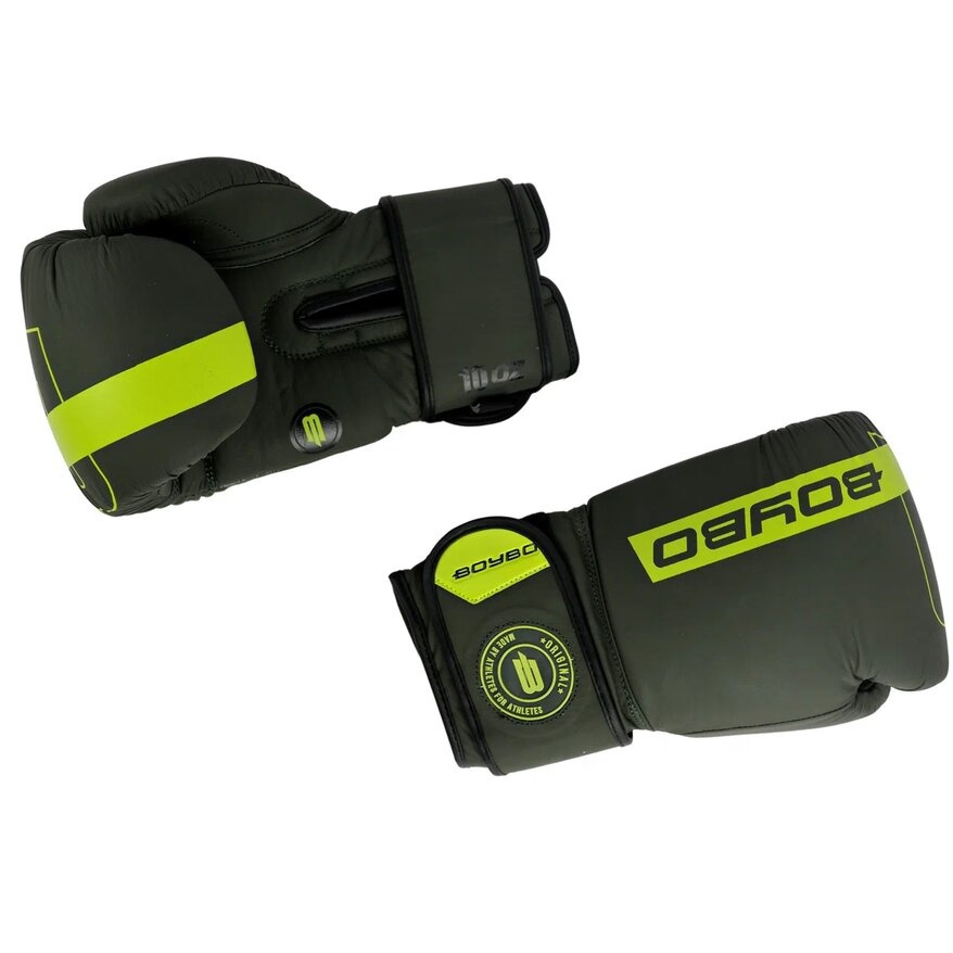 Перчатки боксерские BoyBo Fusion BG-092 кожа, серо-зелёный, 12 OZ