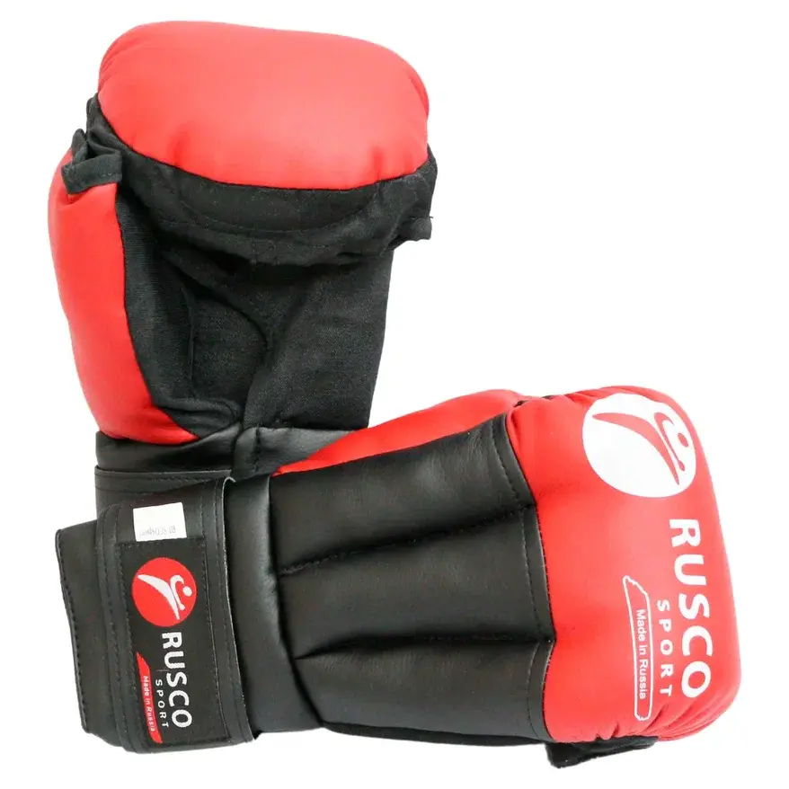 Перчатки для Рукопашного боя RUSCO SPORT предназначены для рукопашного боя, смешанных единоборств, отработки ударов по снаряду. Благодаря своей продуманной конструкции не сковывают кисти рук, что позволяет проводить любые приёмы рукопашного боя такие как броски, блоки, захваты, удары, удержания. Изготовлены из качественной, высокопрочной, искусственной кожи. Внутренняя поверхность перчаток изготовлена из плотной прочной хлопковой ткани. Первые фаланги пальцев открыты, что позволяет сохранять тактильные ощущения при выполнении захватов и блокировок, а эластичная набивка большого пальца перчатки не сковывает его движения и не препятствует проведению любых ударных техник. Широкая манжета надежно фиксирует руку в лучезапястном суставе.