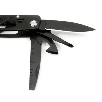 Мультитул «СЛЕДОПЫТ-HEADWAY» - набор из 11 предметов профильного или повседневного инструмента, заключенный в одном компактном корпусе. Имеет все необходимые инструменты, которые могут понадобиться на отдыхе и в быту. Набор инструментов изготовлен из коррозионностойкой жаропрочной стали 420. Особая структура стали придает изделиям высокую твердость, лезвия хорошо точатся и устойчивы к повреждениям. Армированный чехол для крепления на поясном ремне сохранит мультитул в чистоте и защитит от неблагоприятного воздействия внешней среды. Мультитул «СЛЕДОПЫТ-HEADWAY» удобен в использовании, имеет высокое качество и стильный дизайн. В комплект мультитула входят: • Нож • Пила • Кусачки • Острогубцы • Консервный нож • Напильник • Малая плоская отвертка • Пассатижи • Отвертка крестообразная • Открывашка для бутылок • Большая плоская отвертка и гаечный ключ Вес – 248 г. Размер – 105*45*16 мм. Материалы – нерж.сталь 420. Компектация: мультитул, чехол армированный.